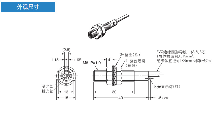 E3HT系列M8正方向柱形光電開(kāi)關(guān)