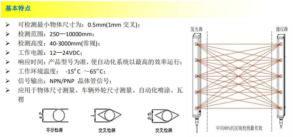 1、開關(guān)量輸出:NPN/PNP 通過程序設(shè)定遮擋不同數(shù)目的光束時(shí),光幕才有信號(hào)輸出;