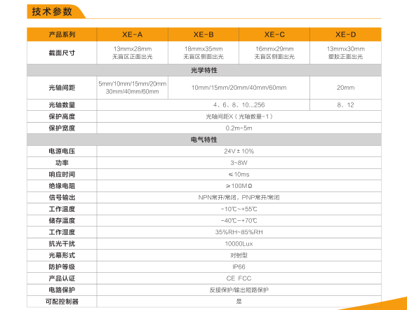 XE-C超薄型安全光柵