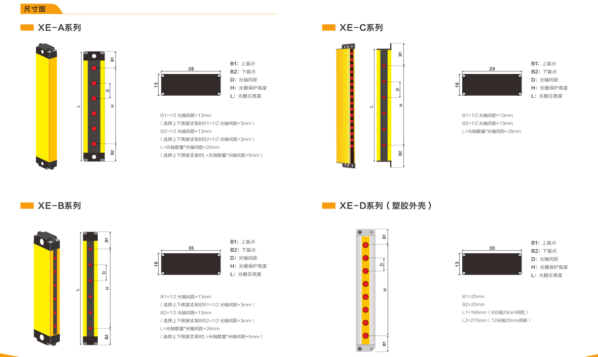 XE-D系列超薄型塑膠外殼安全光柵