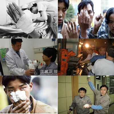 一、從未公布的數(shù)據(jù):早在2005年廣東商學(xué)院社會(huì)工作系謝教授對(duì)佛山、中山、東莞、惠州、深圳和廣州6個(gè)珠三角城市的39家醫(yī)院、582位工傷患者進(jìn)行調(diào)查走訪,最終寫出《珠三角“傷情”報(bào)告》,結(jié)果觸目驚心:每年發(fā)生在該地區(qū)的斷指事故就達(dá)3萬(wàn)宗,被機(jī)器切斷的手指頭超過4萬(wàn)只。